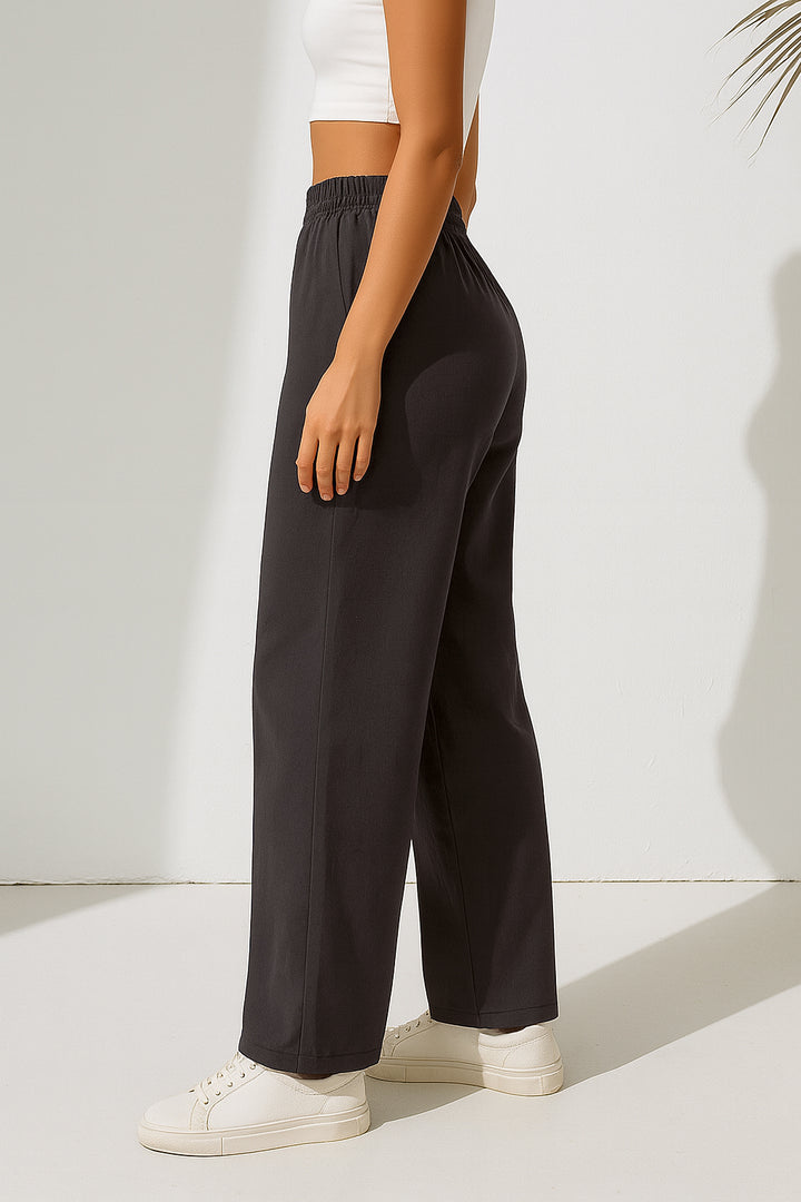 CRAFTED FOR EVERYDAY COMFORT AND EASE, THESE LOWERS ARE BREATHABLE, LIGHTWEIGHT, AND SOFT ON THE SKIN. THE COTTON FABRIC ALLOWS SMOOTH AIR CIRCULATION, KEEPING YOU COOL AND FRESH ALL DAY. ADDED LYCRA GIVES THE PERFECT.STRETCH FOR UNRESTRICTED MOVEMENT AND A FLATTERING FIT. RETAINS SHAPE AFTER EVERY WEAR—NO SAGGING OR BAGGING. IDEAL FOR DAILY WEAR, LOUNGING, OR TRAVEL.