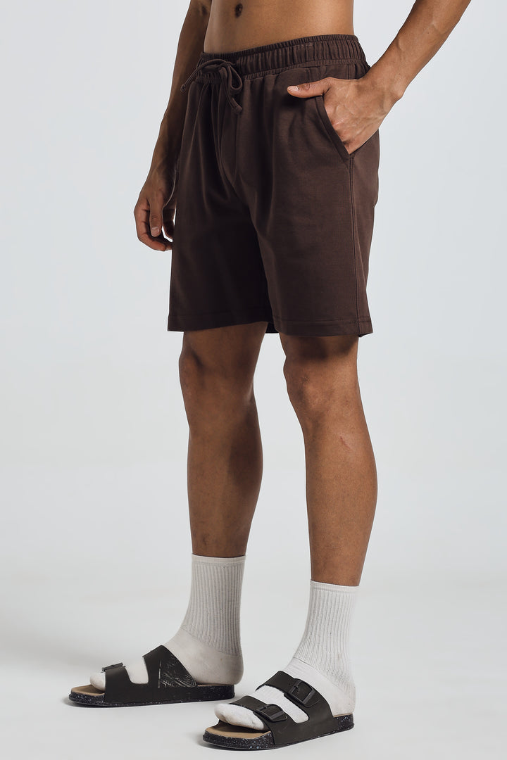 PEANUT INTERLOCK SHORTS - BITTER CHOCOLATE