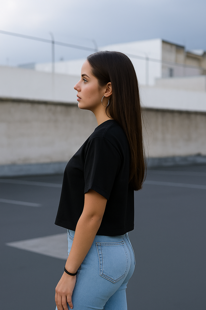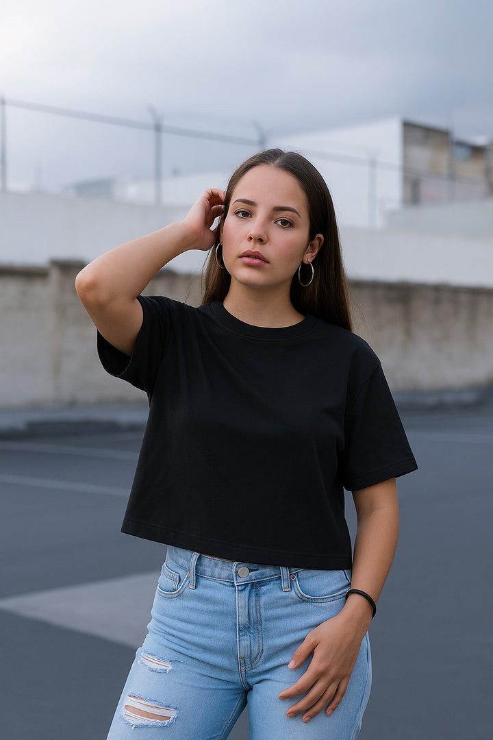 RELAXED FIT CROP TOP- Black