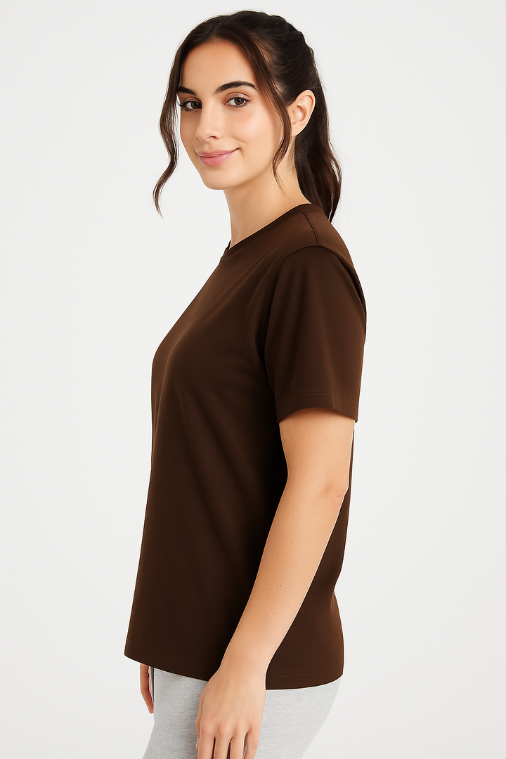 VERSATILE, COMFORTABLE, AND TIMELESS WARDROBE STAPLE DESIGNED FOR EVERYDAY WEAR.MADE FROM SOFT COTTON LYCRA FABRIC, IT OFFERS A BREATHABLE AND LIGHTWEIGHT FEEL. THE DESIGN IS SIMPLE YET FLATTERING, FEATURING A CLASSIC CREW NECK, SHORT SLEEVES, AND A REGULAR WOMEN’S FIT.