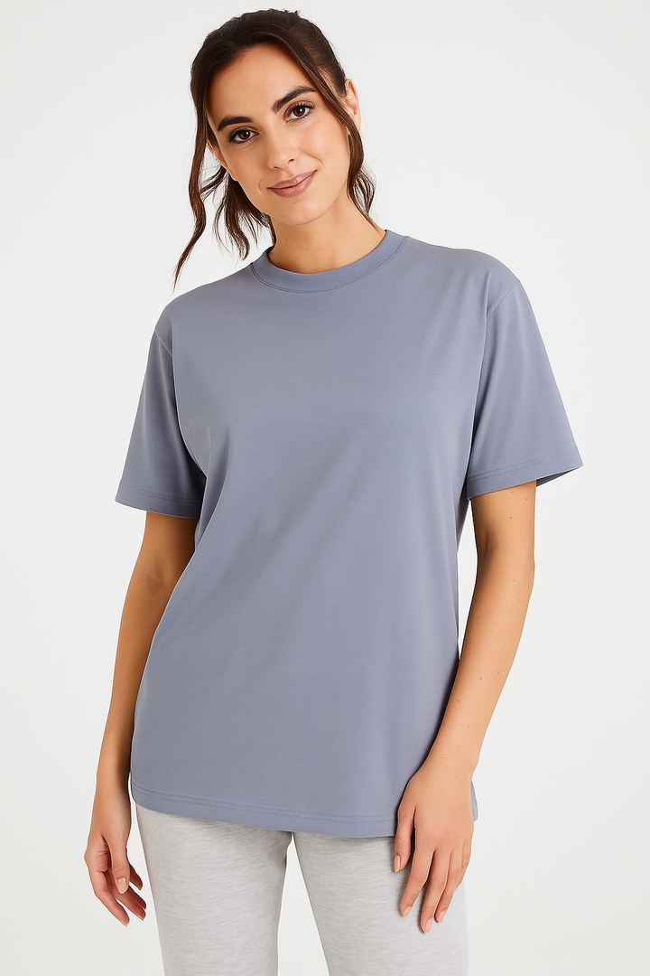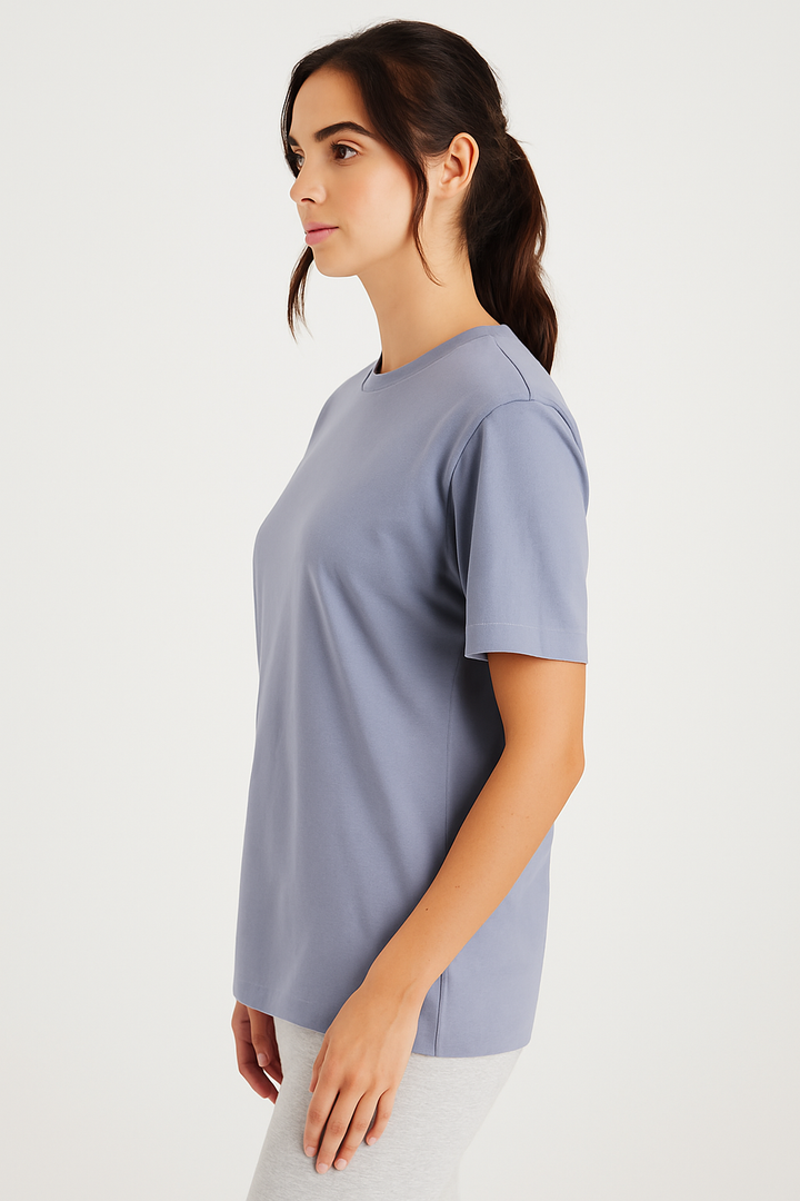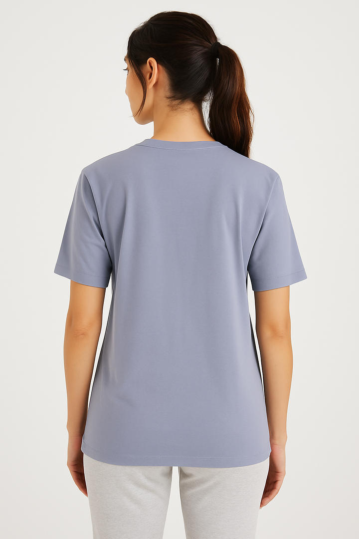 VERSATILE, COMFORTABLE, AND TIMELESS WARDROBE STAPLE DESIGNED FOR EVERYDAY WEAR.MADE FROM SOFT COTTON LYCRA FABRIC, IT OFFERS A BREATHABLE AND LIGHTWEIGHT FEEL. THE DESIGN IS SIMPLE YET FLATTERING, FEATURING A CLASSIC CREW NECK, SHORT SLEEVES, AND A REGULAR WOMEN’S FIT.