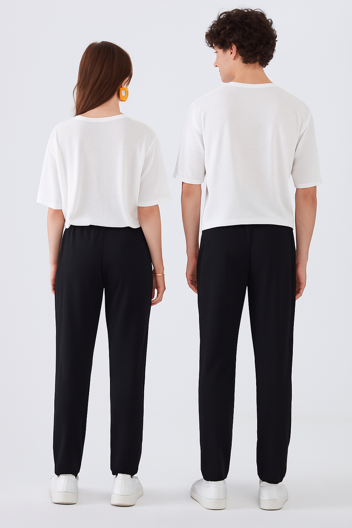 Designed with thoughtful detailing, it features side slat pockets with a concealed zipper for secure storage and a practical back pocket for added convenience. Whether you’re on the move or keeping it casual, The Go-To Unisex Track pairs seamlessly with a simple tee and sneakers for a clean, minimalist look that transcends trends.