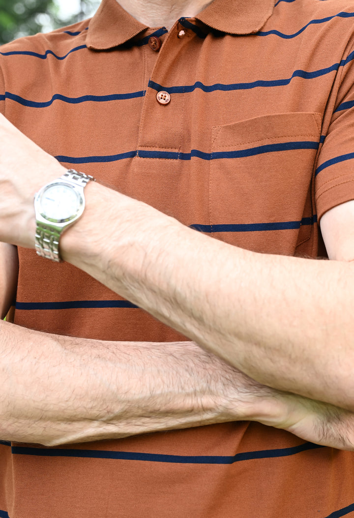Elevate your everyday essentials with the No-Brainer Pocket Stripes. This stylish and functional polo features soothing minimal stripes and sophisticated silhouettes for a modern touch. Crafted from Single Jersey Feeder Stripes fabric, it offers freedom of movement with side slits and a relaxed fit, making it perfect for both casual and active days. The integrated pocket adds practicality without compromising style, blending minimalism with exceptional comfort.