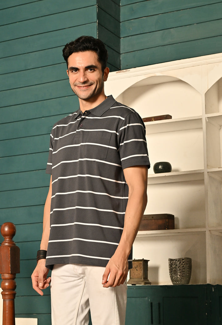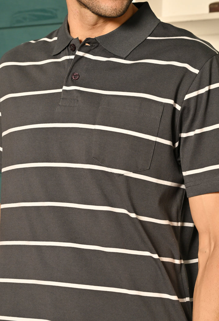 Elevate your everyday essentials with the No-Brainer Pocket Stripes. This stylish and functional polo features soothing minimal stripes and sophisticated silhouettes for a modern touch. Crafted from Single Jersey Feeder Stripes fabric, it offers freedom of movement with side slits and a relaxed fit, making it perfect for both casual and active days. The integrated pocket adds practicality without compromising style, blending minimalism with exceptional comfort.