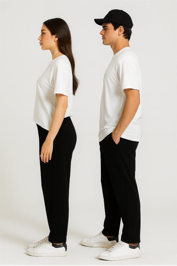 UNISEX RELAXED FIT DRAWCORD PANTS- Black