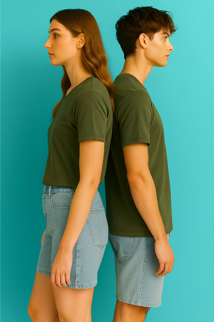 This unisex V-neck T-shirt is crafted from premium cotton lycra fabric, combining the softness and breathability of cotton with the stretch and flexibility of lycra for all-day comfort and a perfect fit. Designed to suit everyone, it offers a clean, modern neckline that flatters all face shapes. Whether worn on its own or layered, this versatile tee is ideal for everyday wear, outdoor activities, or casual outings.
